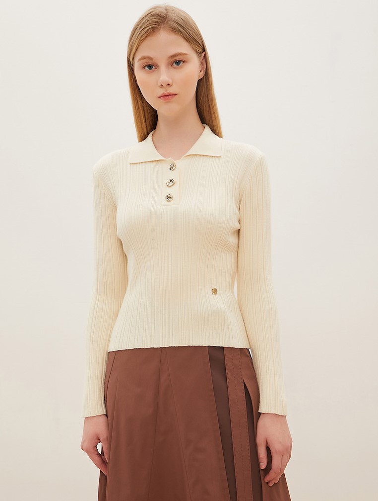 [D essential] 골드버튼 카라 니트풀오버 D214KSK301 : DEWL