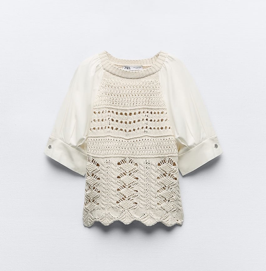 자라의 콤비 슬리브 니트 스웨터는 독특한 디자인과 루즈핏으로, 다양한 스타일에 활용하기 좋은 제품입니다.