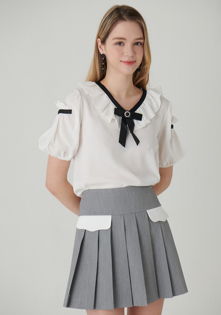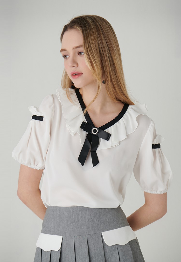 샤틴은 트렌디한 디자인과 합리적인 가격으로 유명한 브랜드입니다. 셔링 카라 리본 블라우스 도 샤틴의 특징을 잘 보여주는 제품이라고 생각합니다.