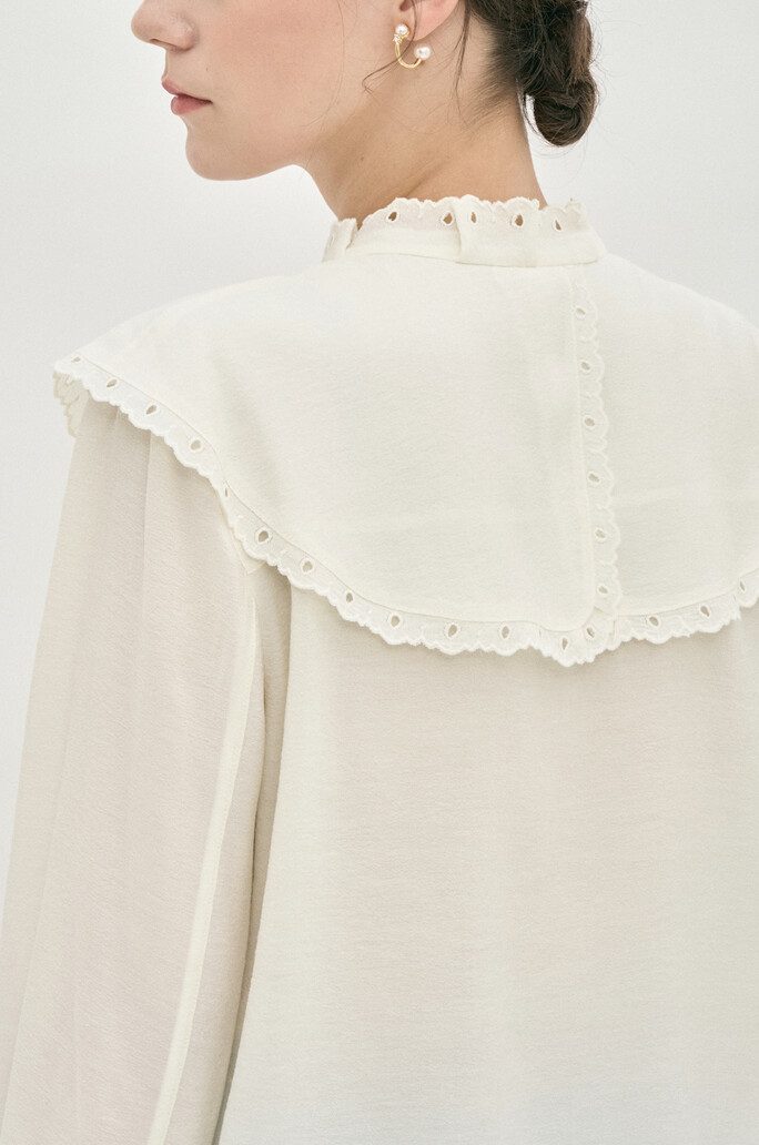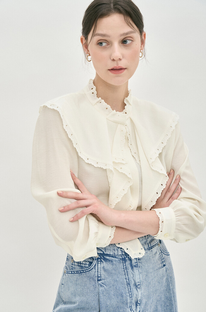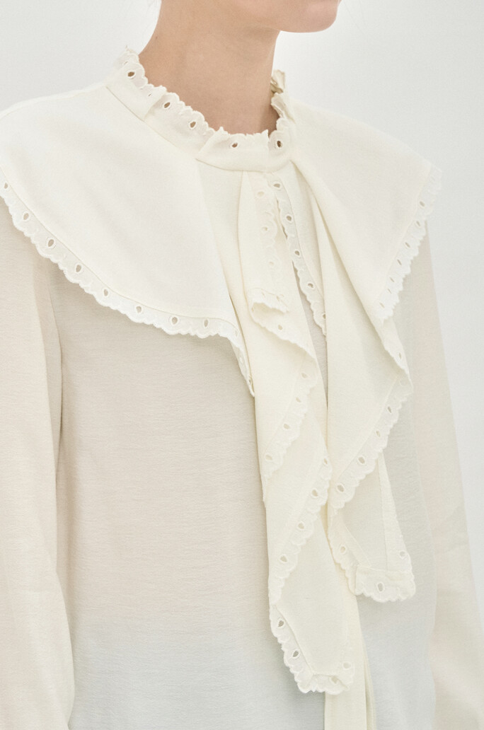 러플 칼라 아일렛 블라우스