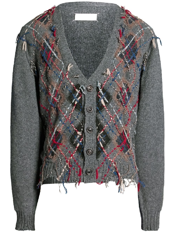 메종마르지엘라-메종마르지엘라 아가일 패턴 스티치 컷아웃 가디건 1080617 | TRENBE | www.trenbe.com