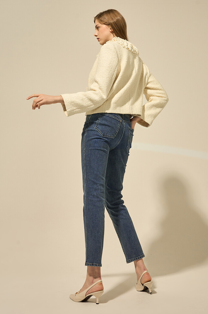 특히, 프린지 디테일은 재킷에 포인트를 주어, 밋밋한 데일리룩에 활기를 불어넣어줍니다. 또한, 슬림핏으로 몸매를 슬림하게 연출할 수 있습니다.