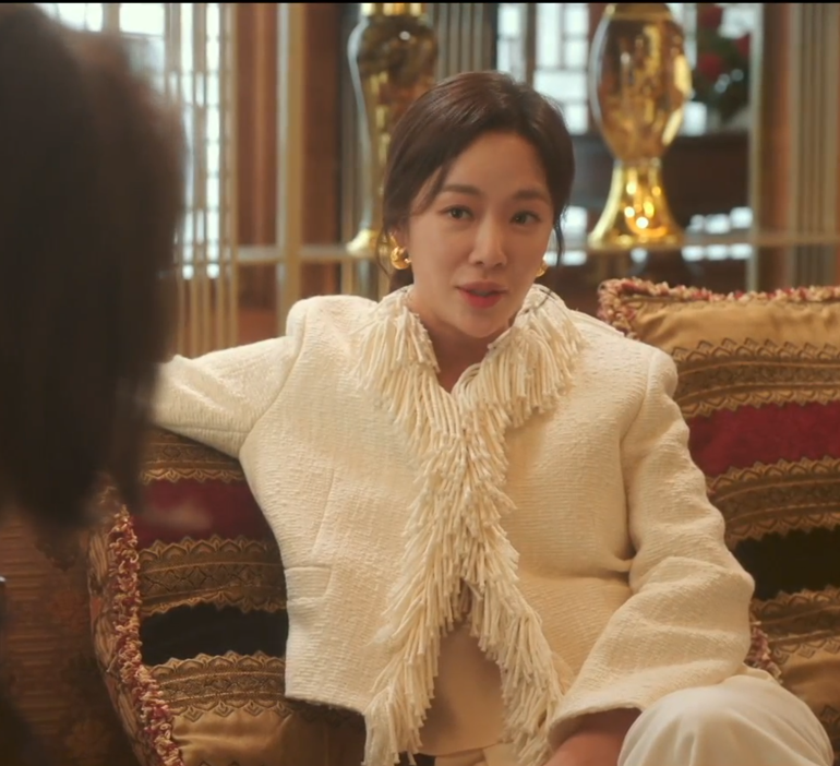 7인의 탈출 2회 230916 황정음 금라희 재킷 옷 패션 브랜드 정보 - LANVIN COLLECTION 울 블렌드 프린지 재킷