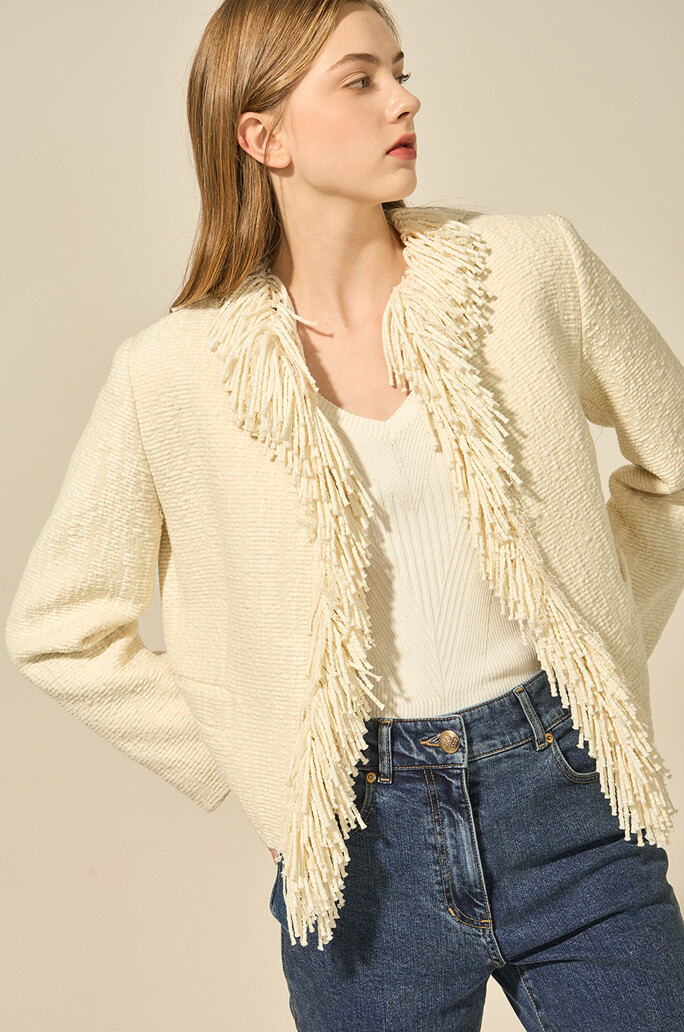울 블렌드 프린지 재킷